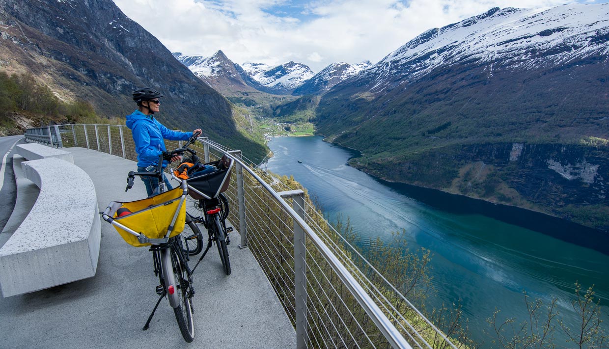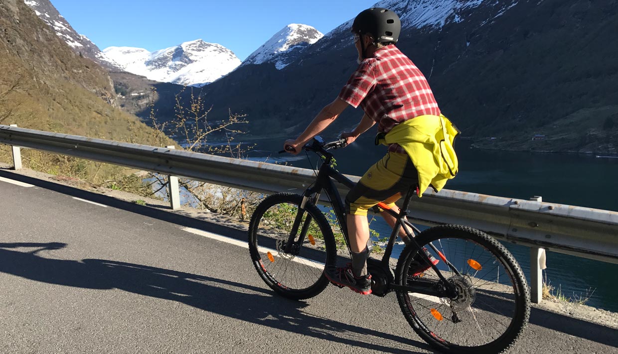 Alquile una bicicleta eléctrica con nosotros y disfrute de la libertad de explorar Geiranger a su propio ritmo con la energía eléctrica adicional para subir las colinas.