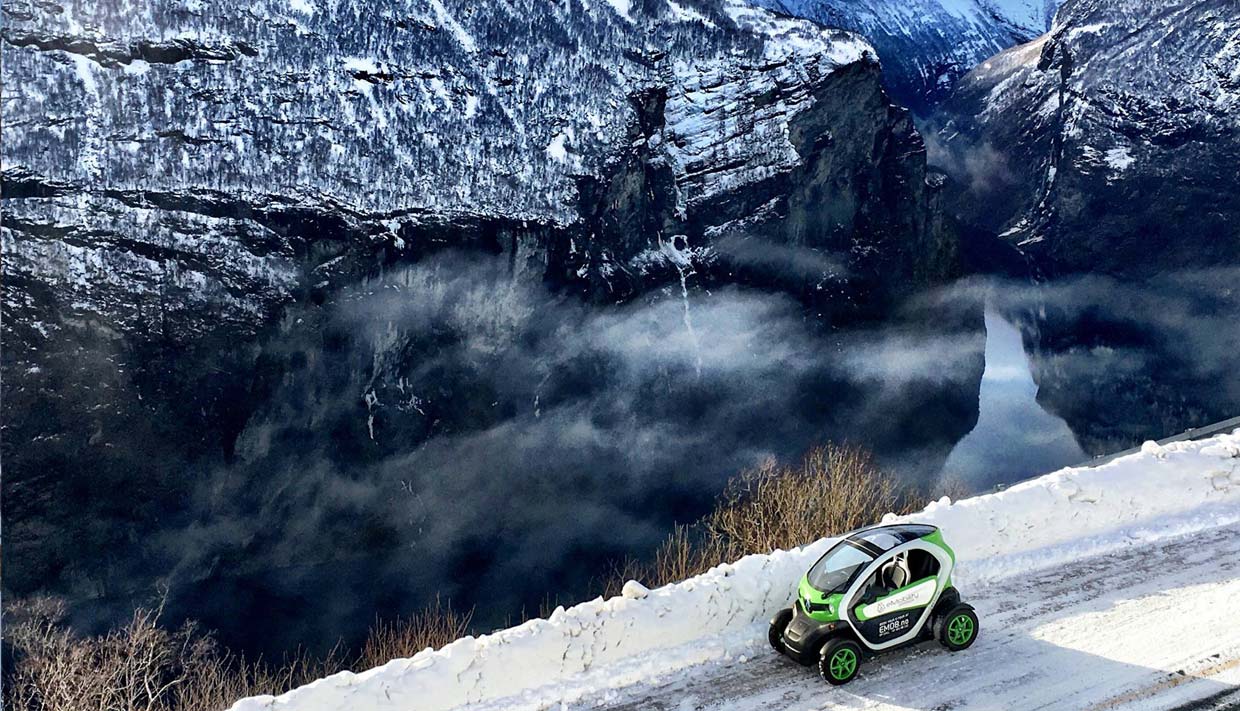 An electric car is an entertaining, eco-friendly and fun way of discovering the Geiranger area.