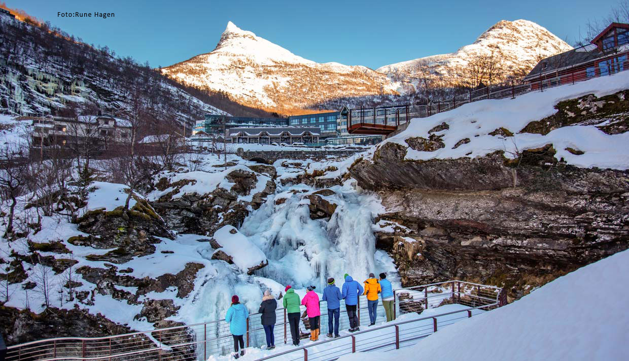 Vi tar deg med i buss til det spektakulære utkikkspunktet Flydalsjuvet, der du får sjansen til å ta flotte bilder av fjorden og Geiranger. Vi besøker Norsk Fjordsenter, som er et spennende besøks- og formidlingssenter for Vestnorsk fjordlandskap og for Geirangerfjorden verdensarvområde. I tillegg til en flott, interaktiv utstilling, er her også kafé og utsalg av lokale håndtverksprodukter.